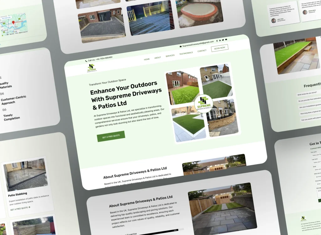 A professional landscaping website showcasing expert driveway and patio design with real project examples.