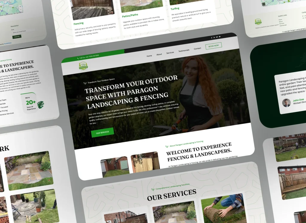 A vibrant landscaping and fencing website showcasing expert outdoor transformations and recent projects.
