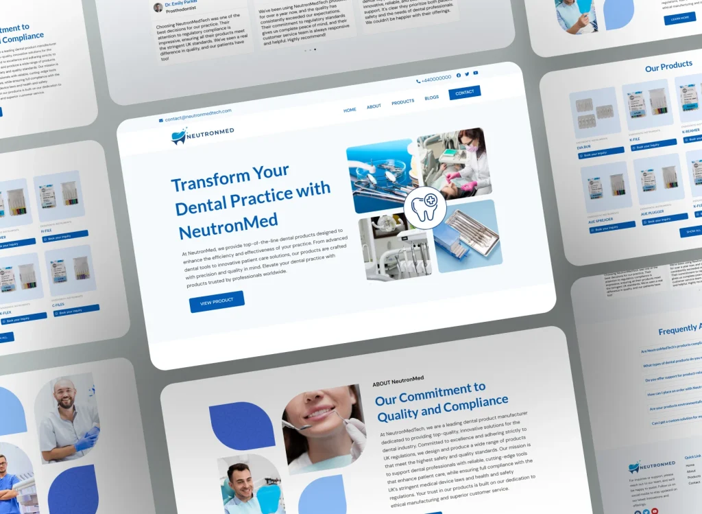 A clean, modern dental solutions website showcasing products, compliance, and patient-focused innovation